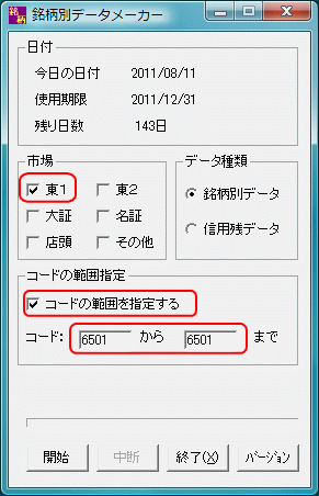 銘柄コードの範囲を指定して銘柄別データ新規作成